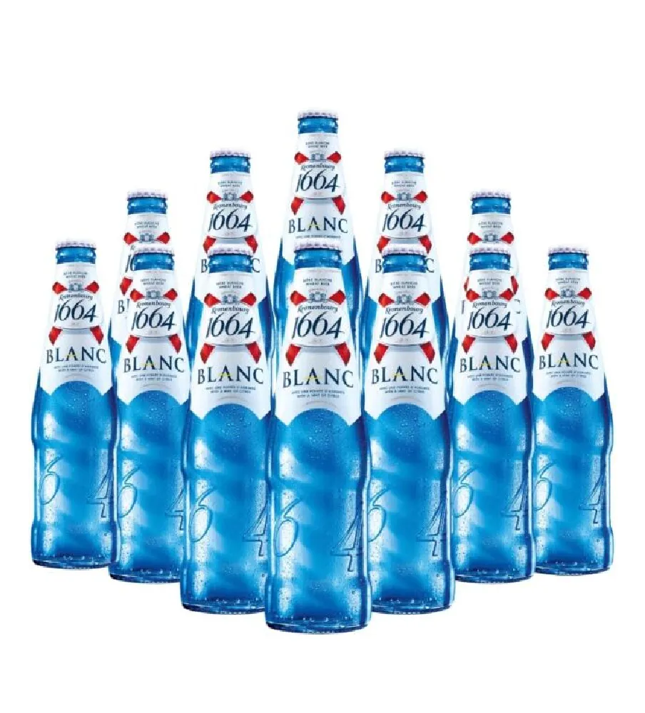 Indulge in the sophisticated flavor of 1664 Blanc, an exquisite French lager presented in its signature blue bottle. Crafted with meticulously chosen ingredients, this beer boasts a distinctive fusion of citrus notes and aromatic spices, resulting in a truly gratifying taste. Contains barley and wheat. Conveniently available in a 24-pack of 330ml bottles.