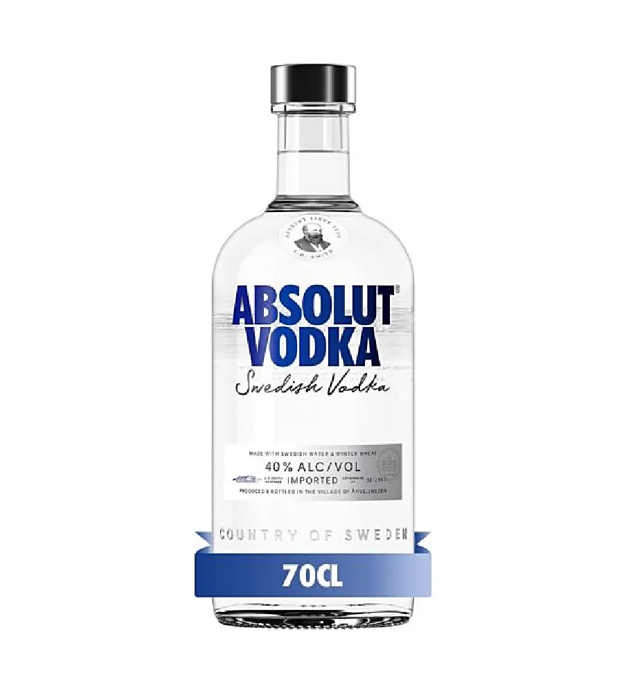 Elevate the quality of your cocktails with Absolut Vodka's smooth, pure taste. Enjoy it straight, on the rocks, or in classic cocktails like martinis, Moscow mules, and Bloody Marys.