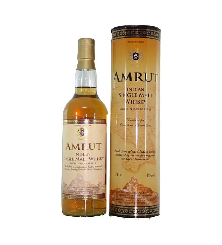 Sample: Amrut Indian Single Malt Whiskey boasts a generous 70cl bottle size and a robust 46% alcohol by volume content.