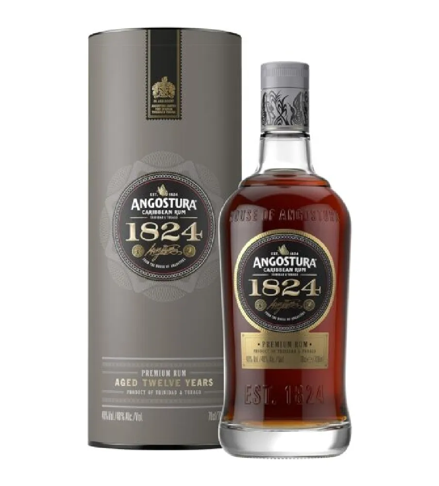 Angostura 1824 Rum, 70 cl Gift box features a mouth-watering blend of chocolate, fruit, honey, spices, and herbs. Its long, flavorful finish is the result of being aged in charred.
