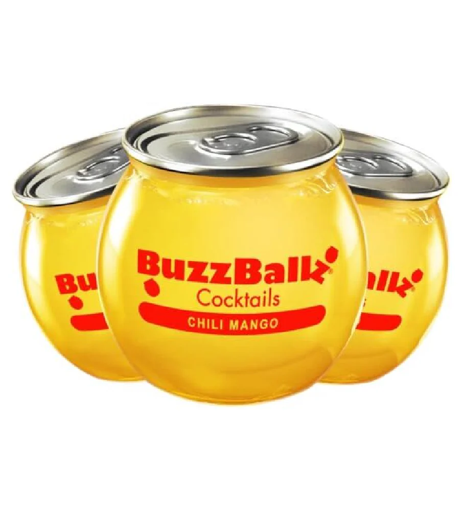 Indulge in a flavorful experience with a pack of 3 SPICY, SWEET, TANGY BuzzBallz Cocktails Chilli Mango 'Rita. Crafted with premium tequila, vodka, smooth mango, and spicy jalapeño pepper, this pre-mixed drink offers an authentic taste and is gluten-free and kosher certified.