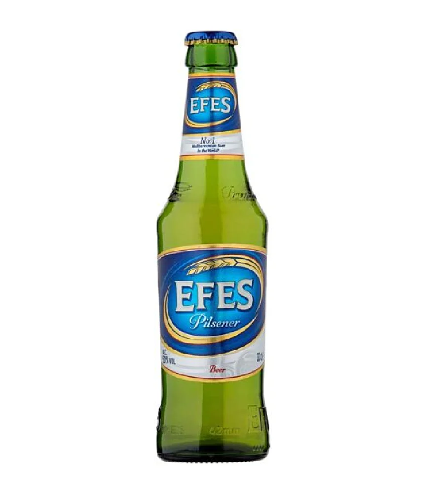 Efes Pilsener Lager (24 x 330ml - 5%) BOTTLES is a renowned Turkish beer that has gained widespread popularity in over 40 countries, including the UK, Germany, the USA, and Japan. In its home country, it holds an impressive 80% market share, solidifying its position as the premier beer of choice.