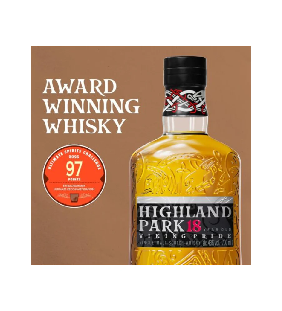 Experience a distinctive flavor profile with Highland Park 18 Year Old Single Malt Whisky, made by the most northerly whisky distillery in Scotland.