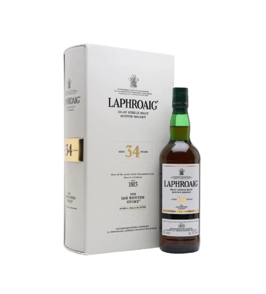 Laphroaig 34 Year Old (1987), part of The Ian Hunter Story series, is an exceptional and sought-after Islay single malt Scotch whisky. With an ABV of 46.2%, this limited-edition release has been aged for over three decades, allowing its rich and complex flavors to reach perfection.