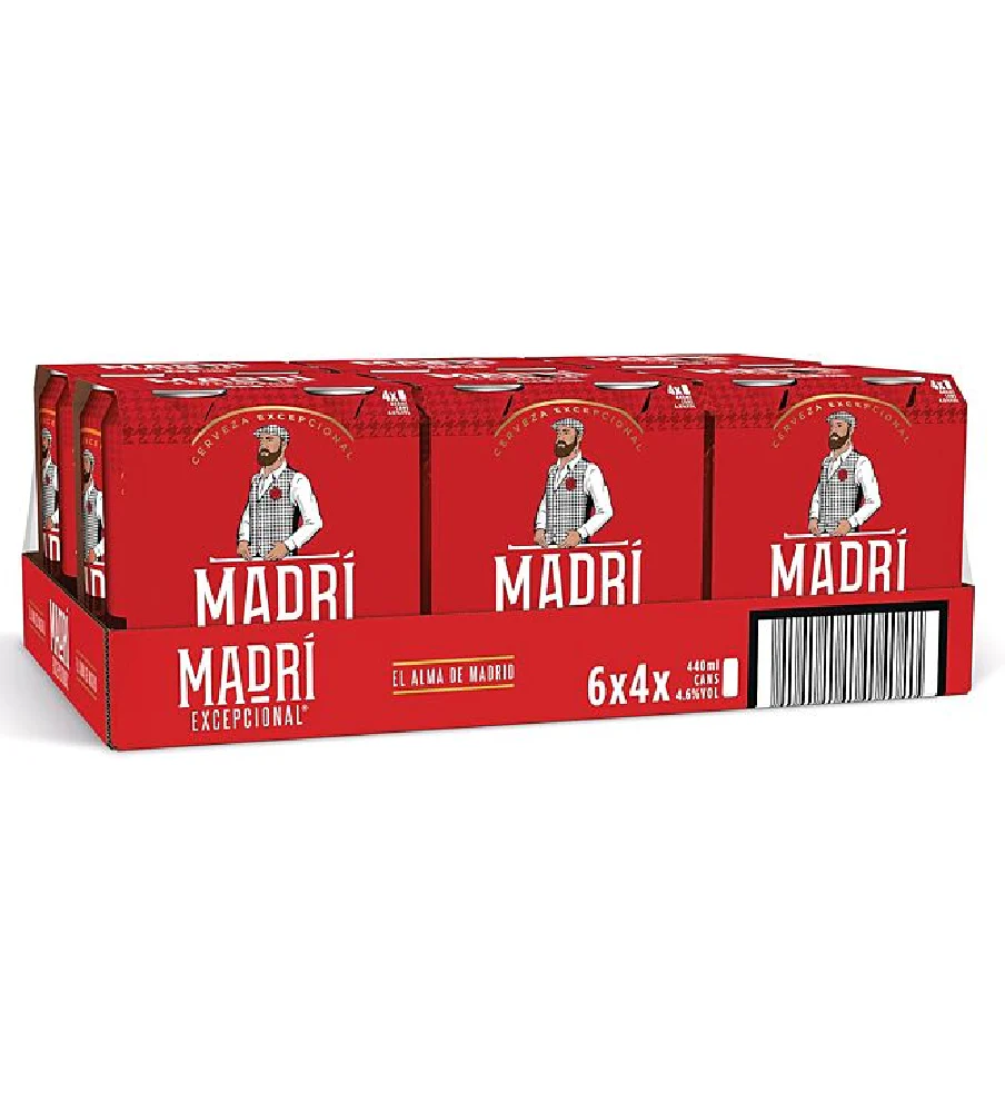 Madri Excepcional is a collaboration between La Sagra and Molson Coors, crafting a modern European lager that is smooth and well-rounded with rich, sweet malt notes, subtle biscuit undertones, and a short, bitter finish. Its appearance is clear straw to golden hue with a frothy white head and medium carbonation.
