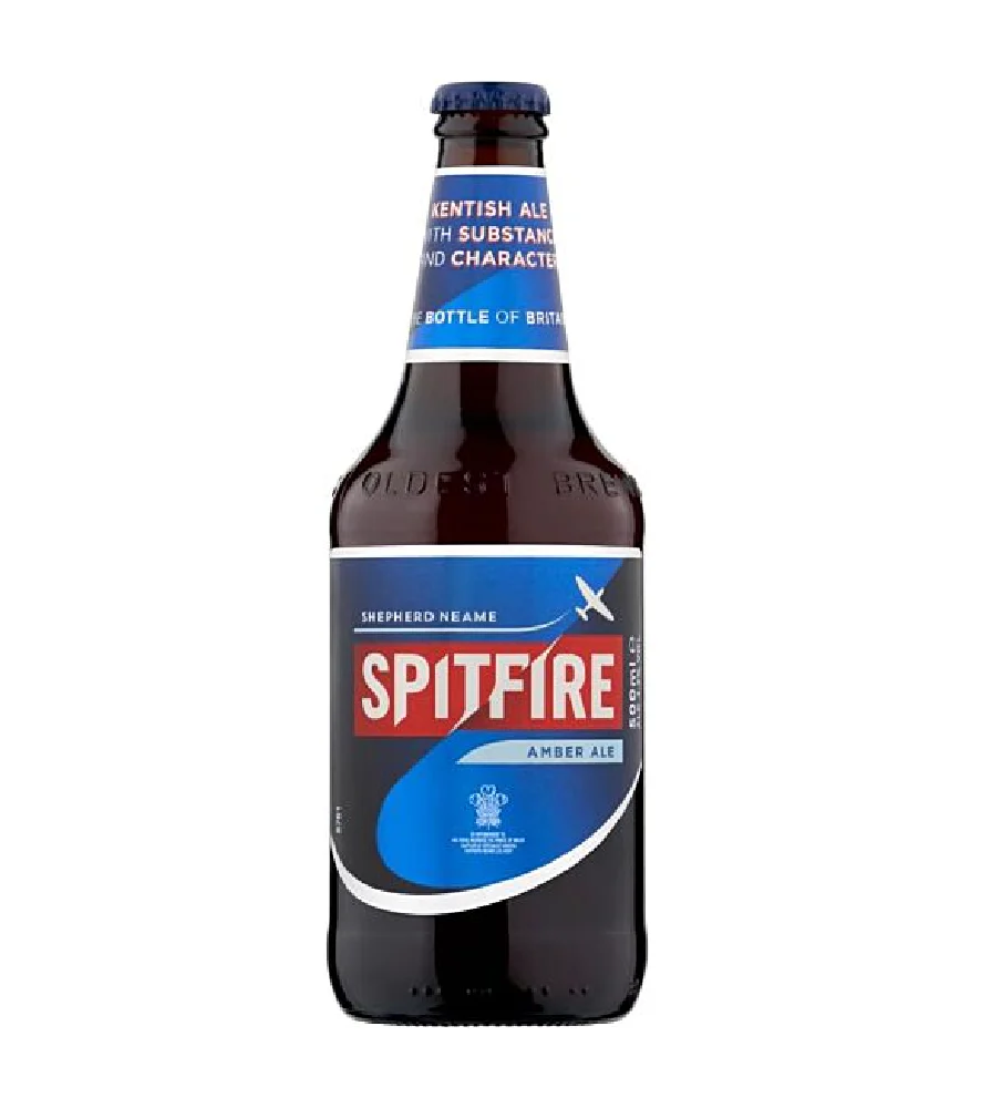 Spitfire Ale is an amber-colored brew featuring a robust hop profile and a velvety, sweet toffee aftertaste.