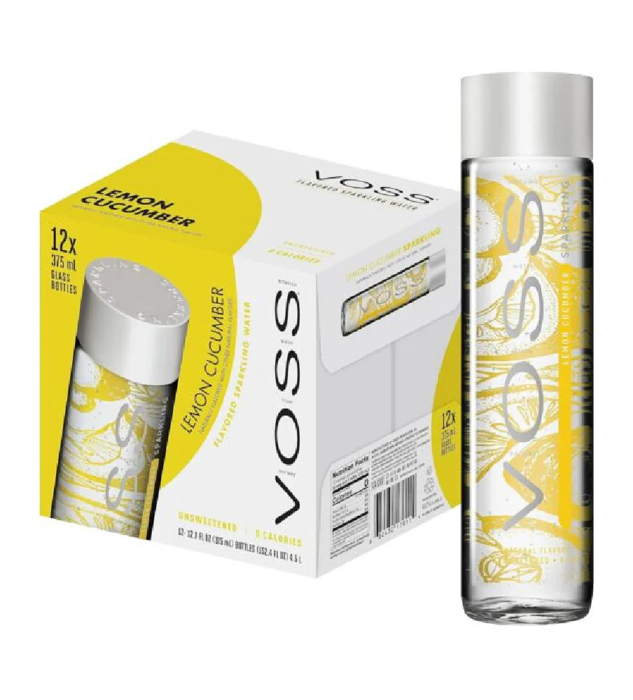 Indulge in a harmonious blend of natural flavors with Voss Lemon & Cucumber Sparkling Water. Sourced from a pure artesian aquifer, this high-quality beverage is expertly crafted with refreshing cucumber and tangy lemon, all encased in delicate bubbles.