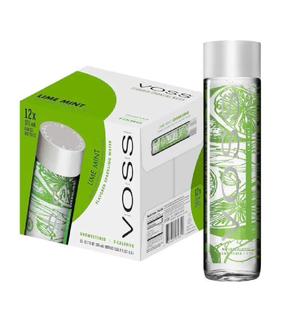 Experience the refreshing blend of natural lime and mint flavors in Voss Lime and Mint Sparkling Water Green. This premium artesian water.