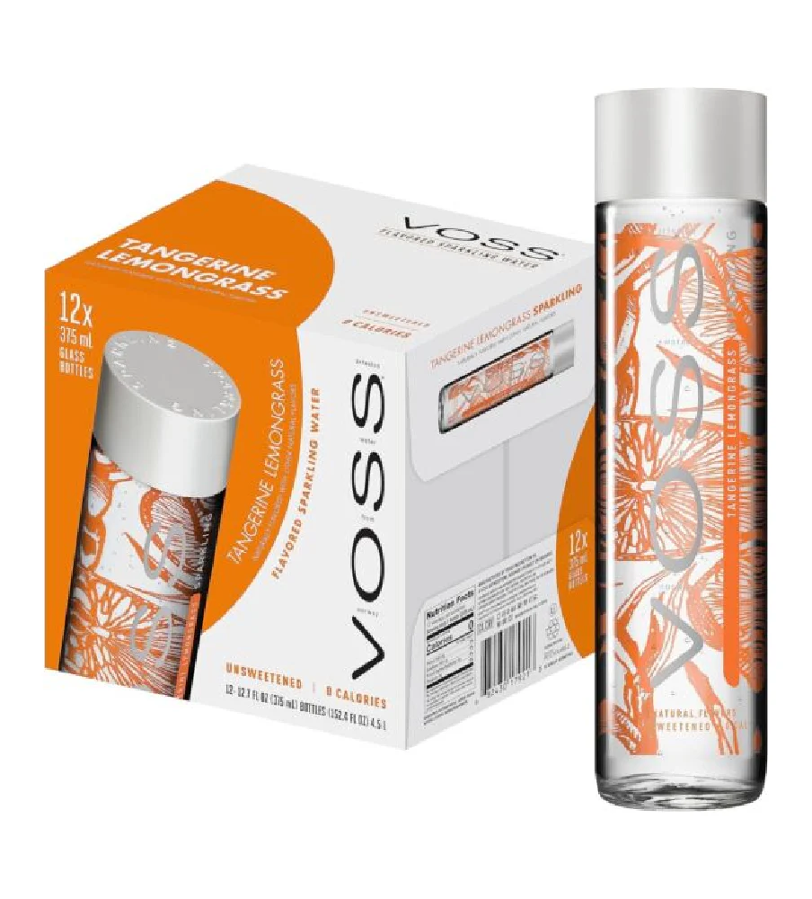 Discover the refreshing taste of Voss Tangerine Lemongrass Sparkling Water, expertly infused with crisp sparkling water and the vibrant flavors of tangerine and lemongrass. This sophisticated beverage offers a light, fruity taste with a subtle touch of zest. The elegant 375ml bottles make it perfect for on-the-go